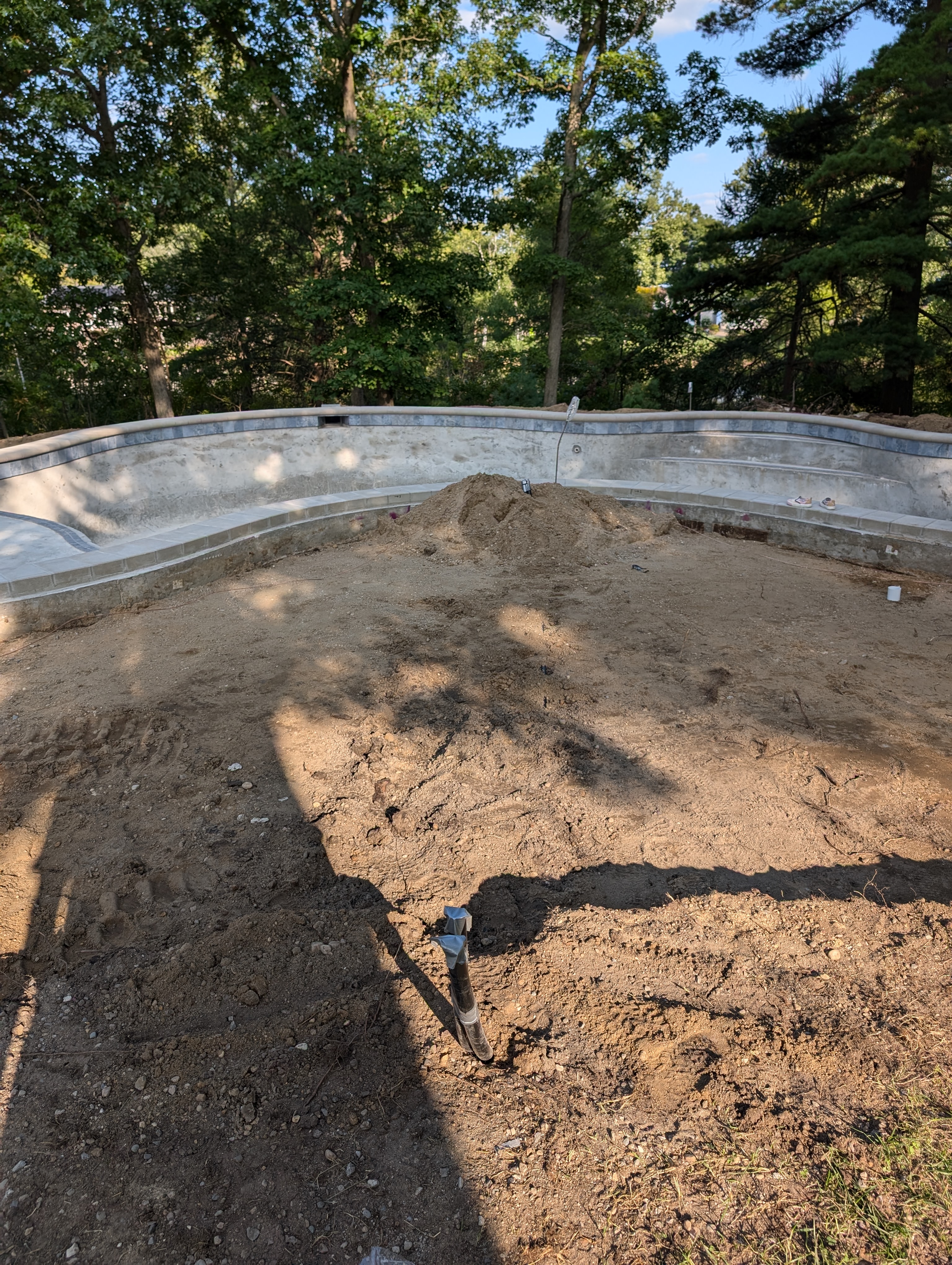 A long length of copper wire was left, that will be tied to the rest of the electrical system to create a common ground. This way, if there's any current leak from the lights in the pool, it will all ground out together.